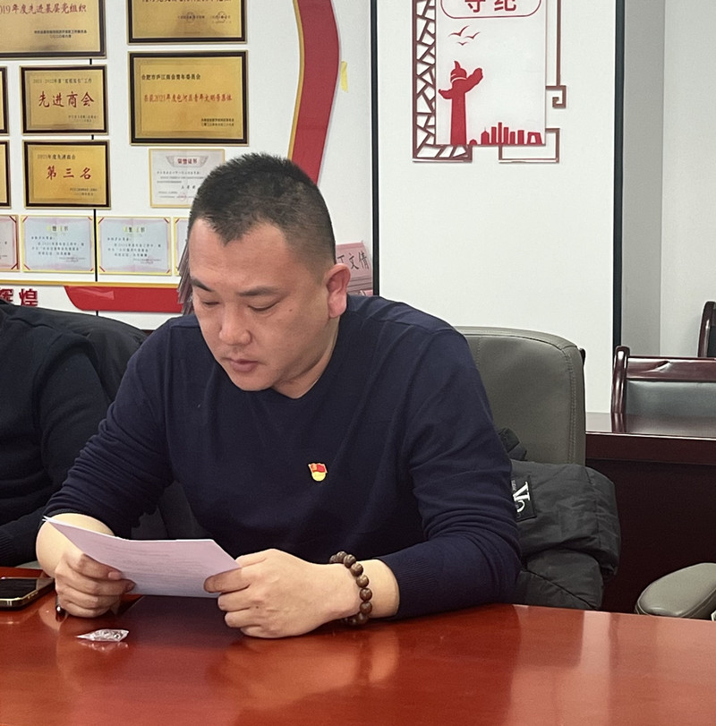 支部书记陶晓明强调,商会党支部要以此次会议为新起点:一要持续强化理论武装,筑牢政治忠诚,把学习成果转化为服务会员、推动发展的实际行动;二要狠抓问题整改落实,建立清单、明确时限,确保整改见底见效;三要充分发挥党支部战斗堡垒作用和党员先锋模范作用,以党建引领商会高质量发展,为合肥经济社会发展贡献庐江商会力量。